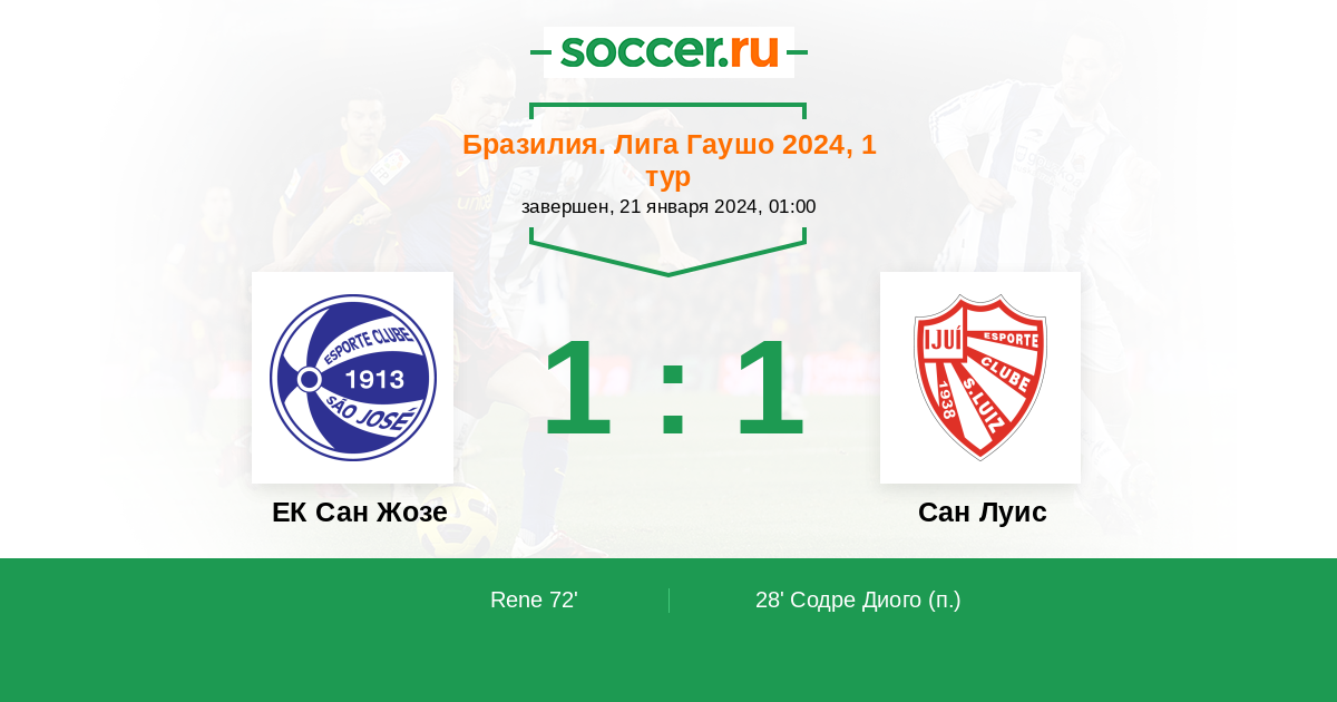 Протокол матча ЕК Сан Жозе против Сан Луис