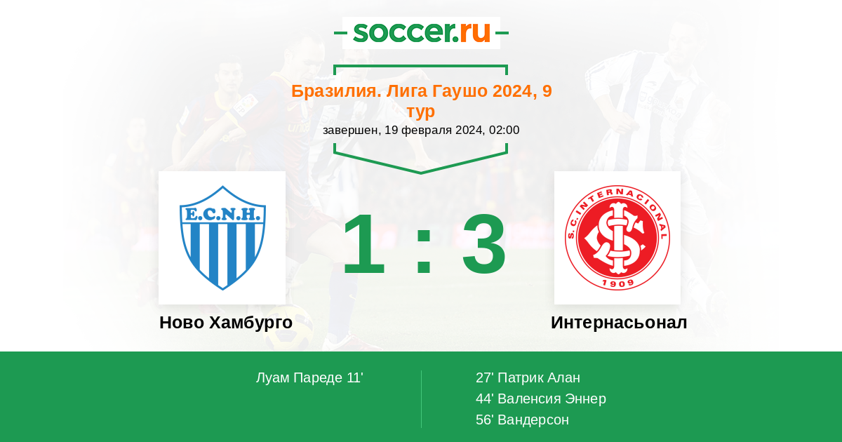 Протокол матча Ново Хамбурго против Интернасьонал