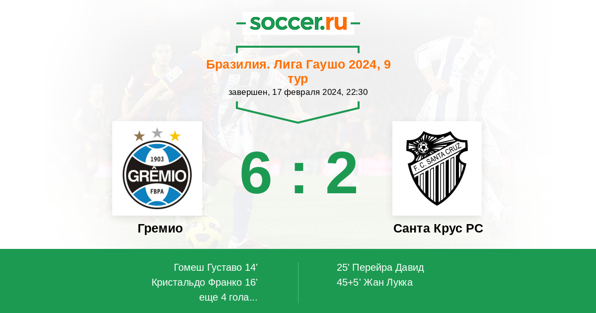 Протокол матча Гремио против Санта Крус РС