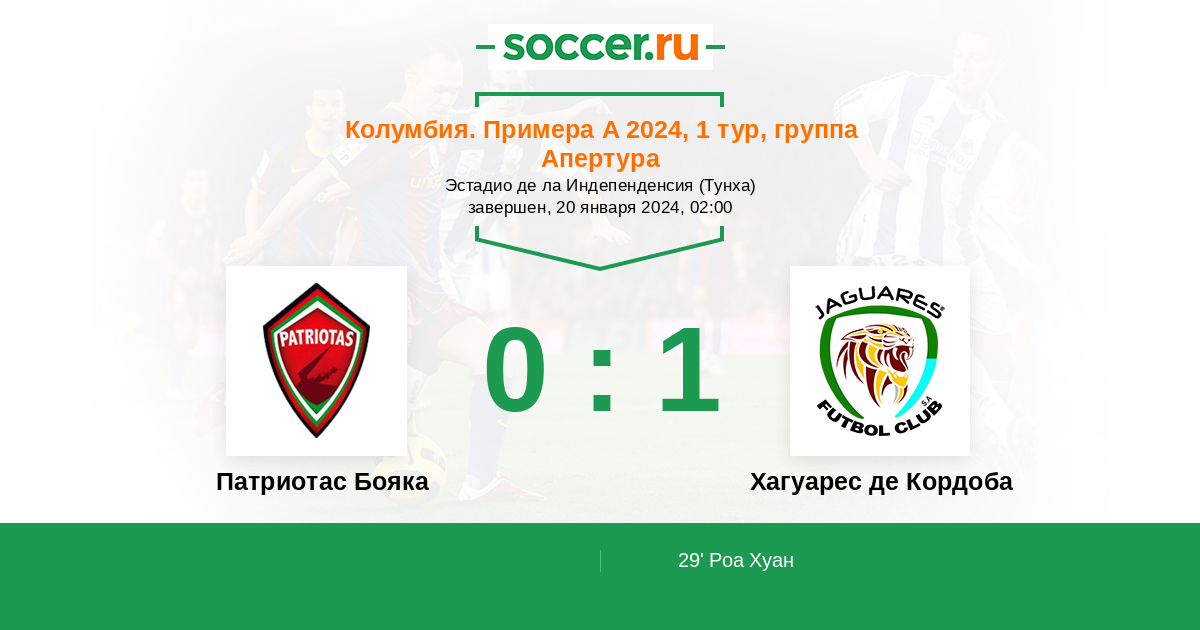 Протокол матча Патриотас Бояка против Хагуарес де Кордоба