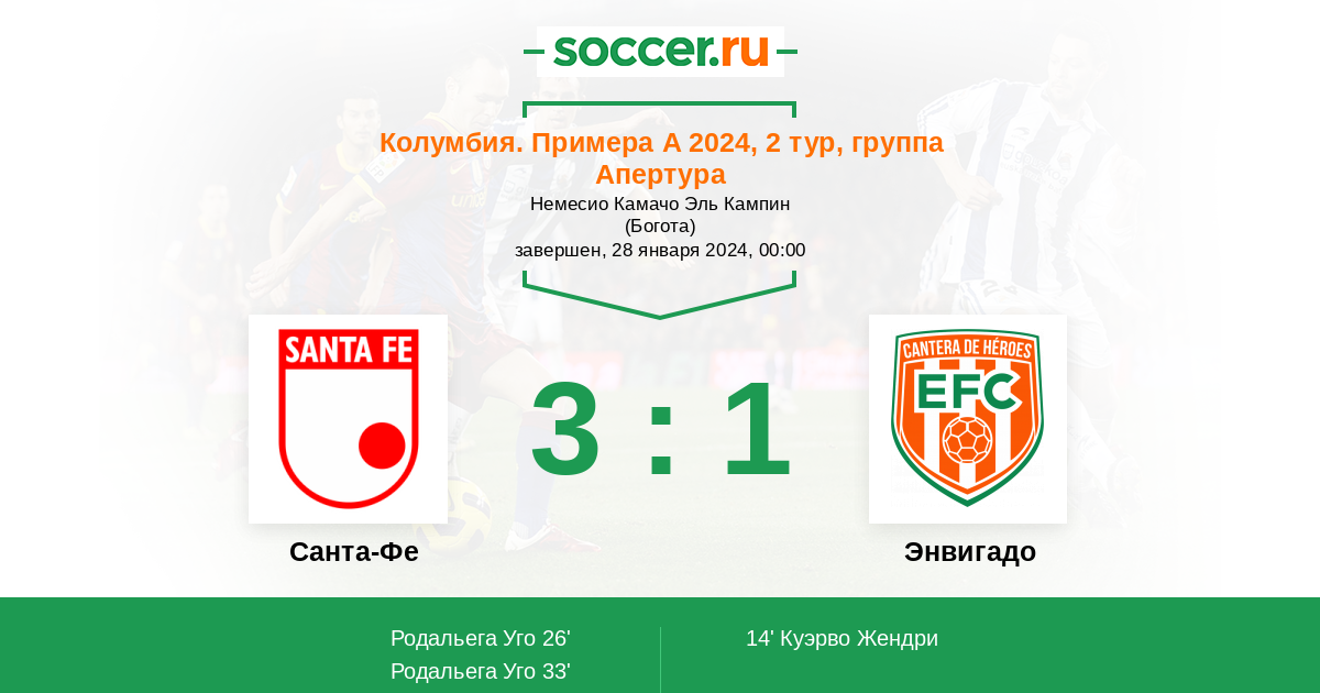 Протокол матча Санта-Фе против Энвигадо