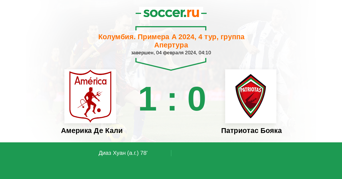 78' (1:0) Автогол Диаз Хуан (15)