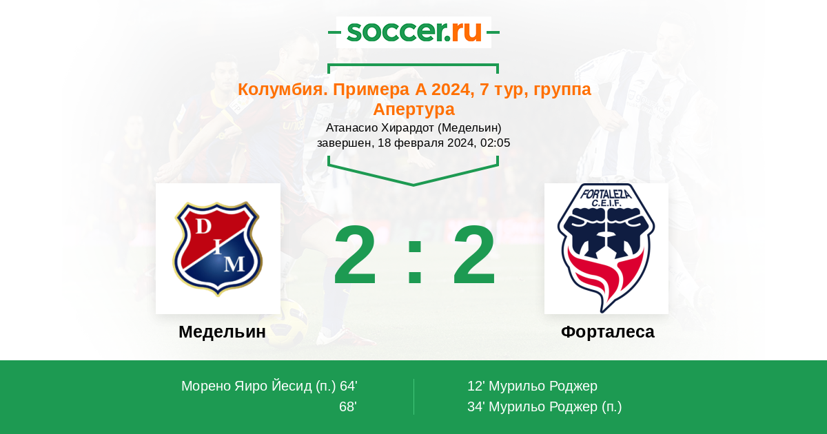 Протокол матча Медельин против Форталеса