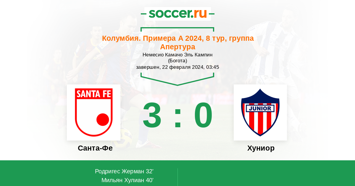 Протокол матча Санта-Фе против Хуниор