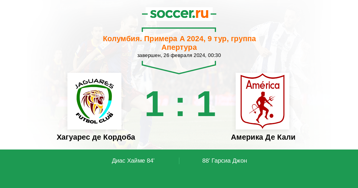 84' (1:0) Диас Хайме (23) (Вильяболос Элиан (32))