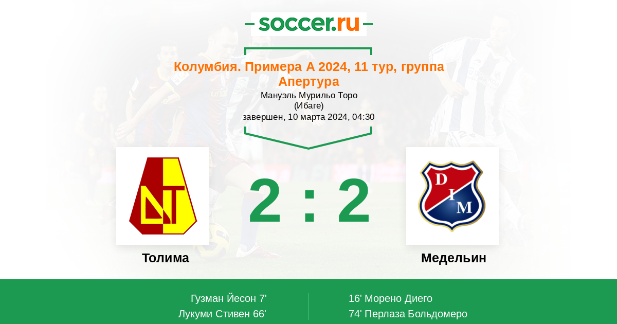 Протокол матча Толима против Медельин