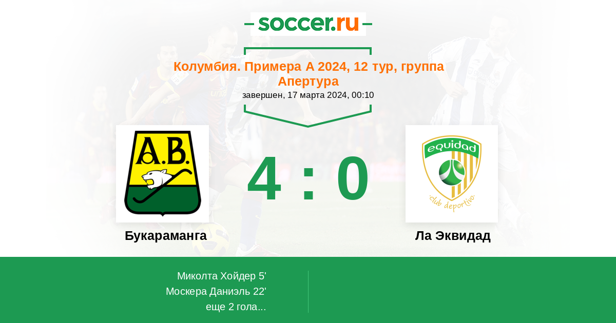 Протокол матча Букараманга против Ла Эквидад
