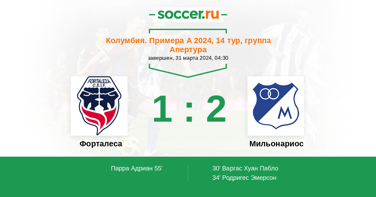 Протокол матча Форталеса против Мильонариос