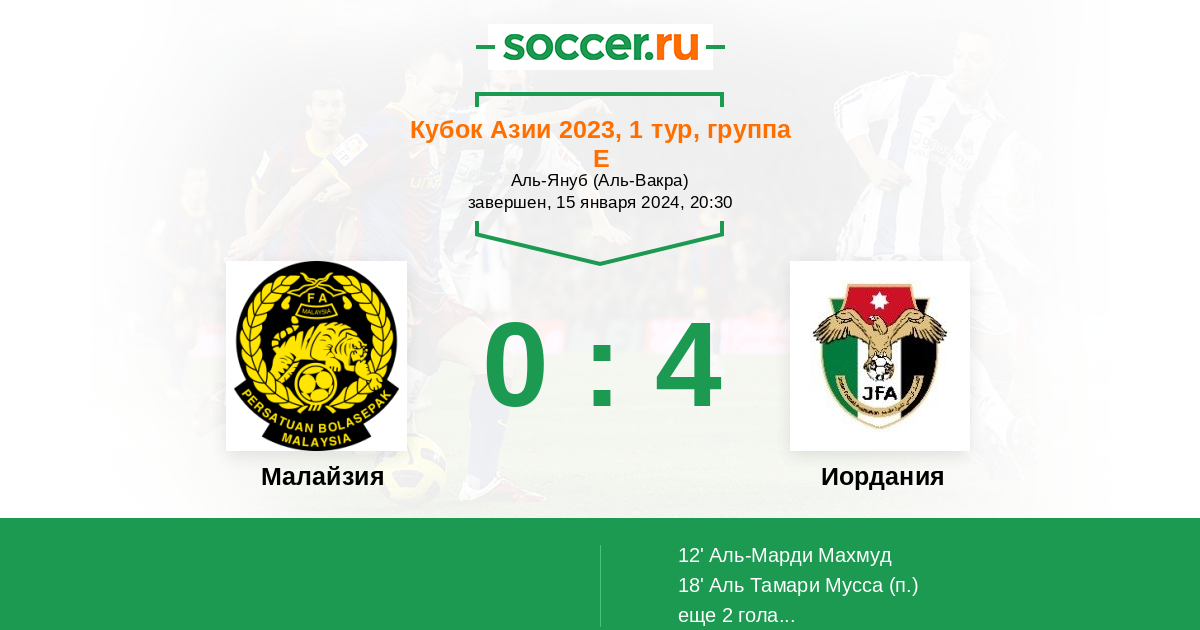 Протокол матча Малайзия против Иордания