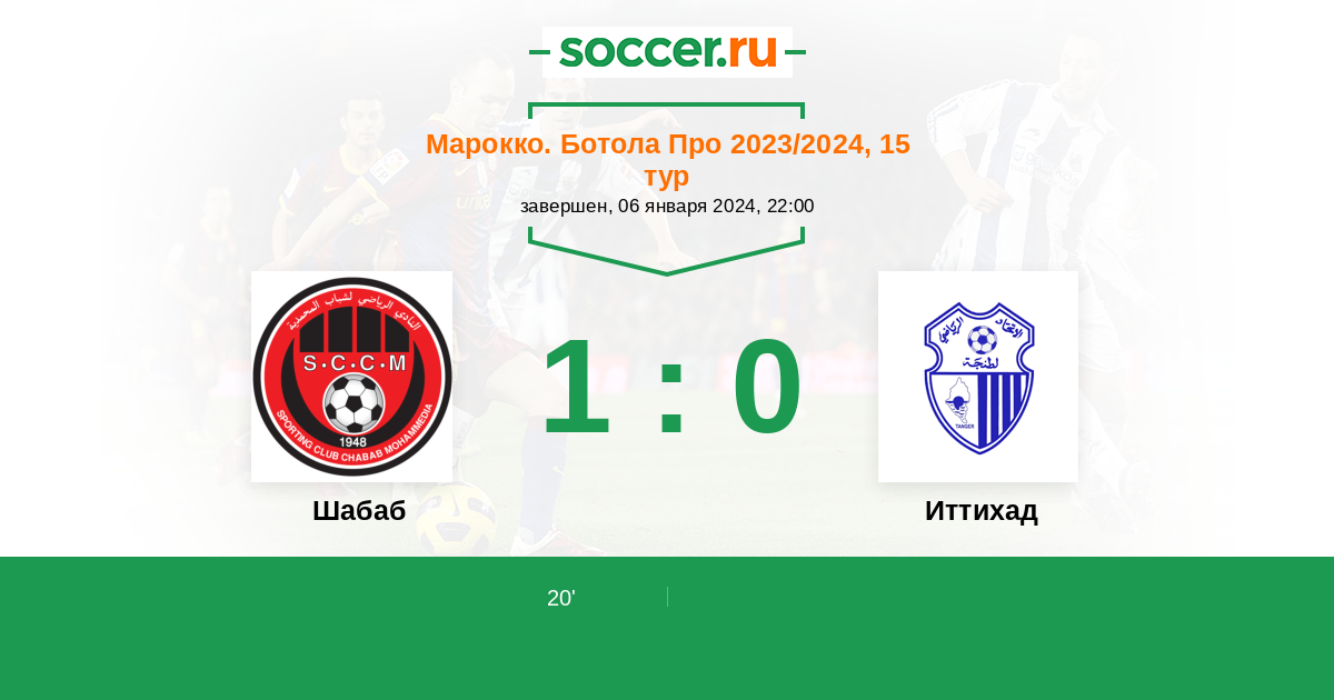 Протокол матча Шабаб против ИР Анже