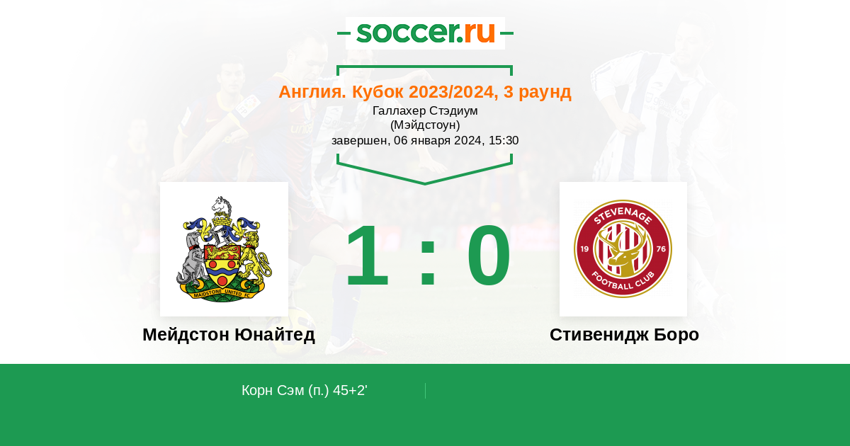 Протокол матча Мейдстон Юнайтед против Стивенидж Боро