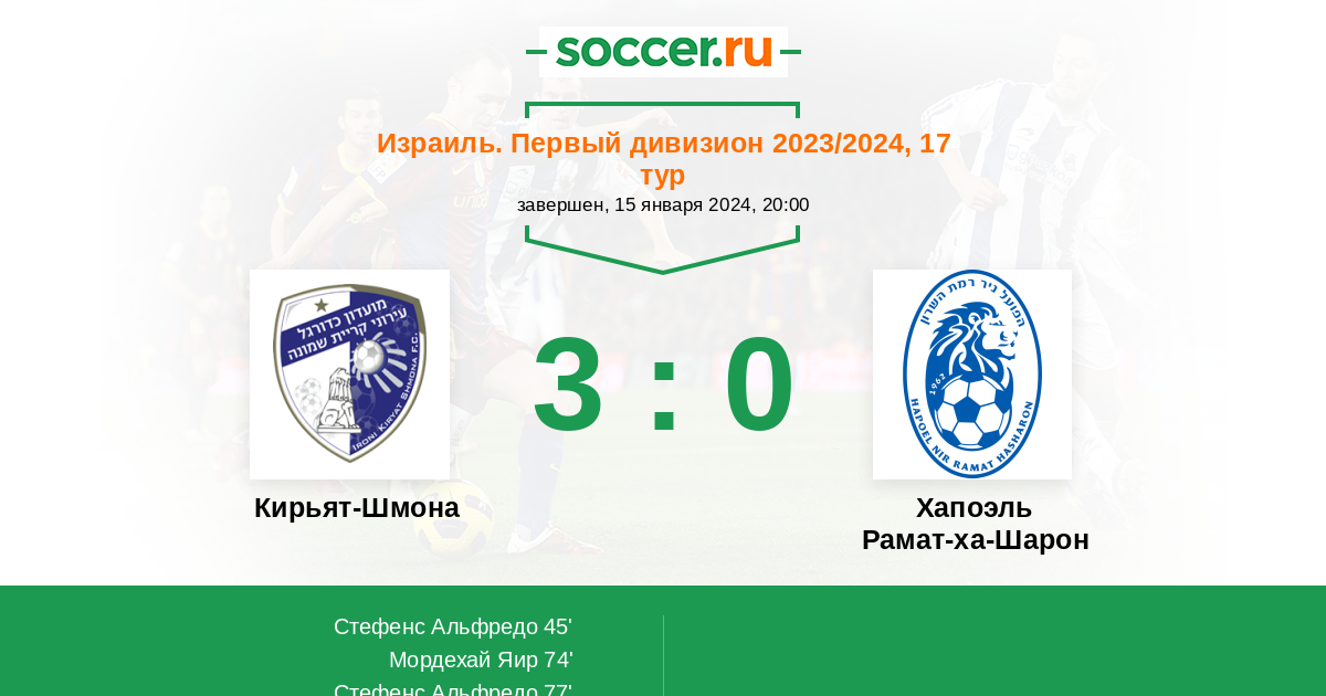 Протокол матча Кирьят-Шмона против Хапоэль Рамат-ха-Шарон