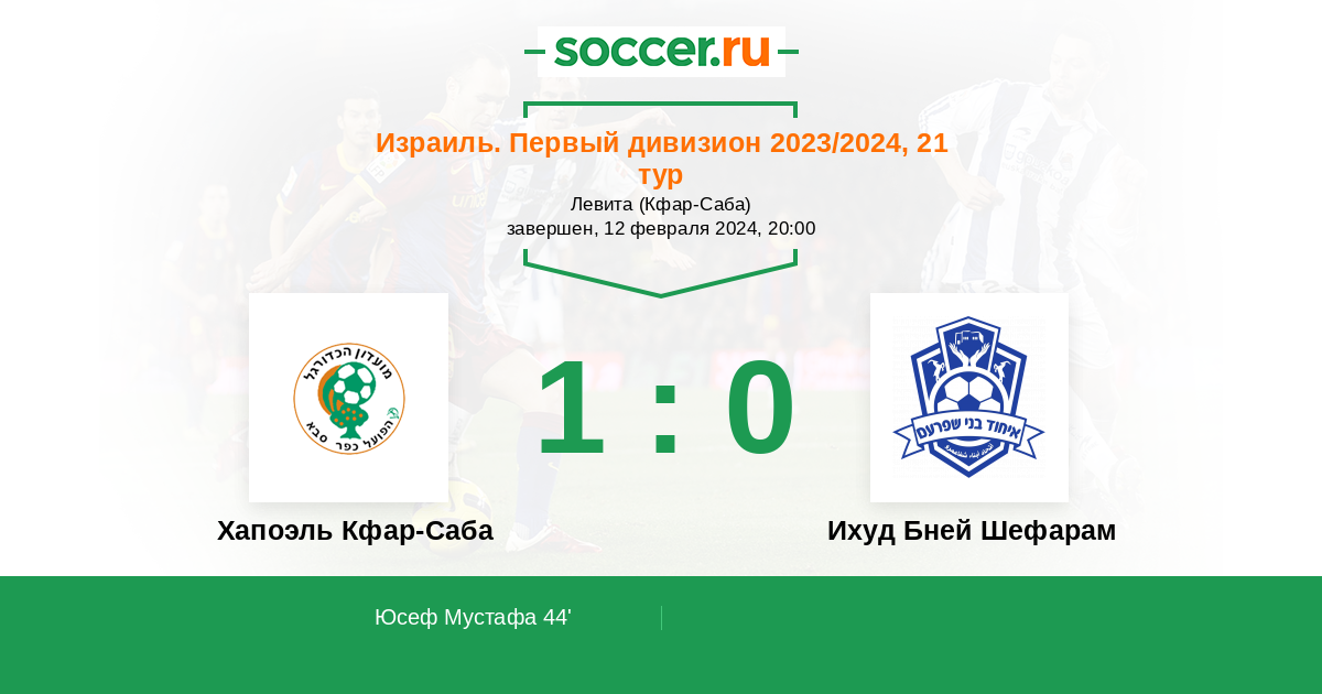 Протокол матча Хапоэль Кфар-Саба против Ихуд Бней Шефарам