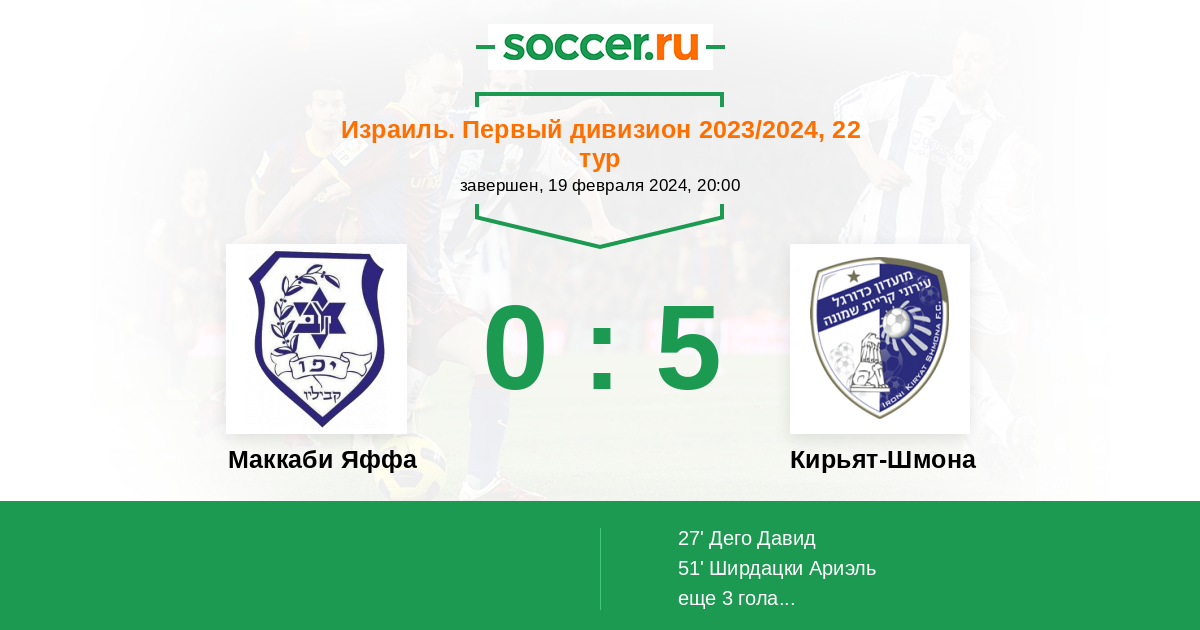 Протокол матча Маккаби Яффа против Кирьят-Шмона