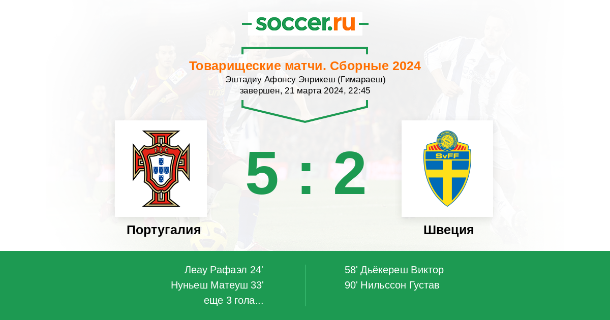 Протокол матча Португалия против Швеция