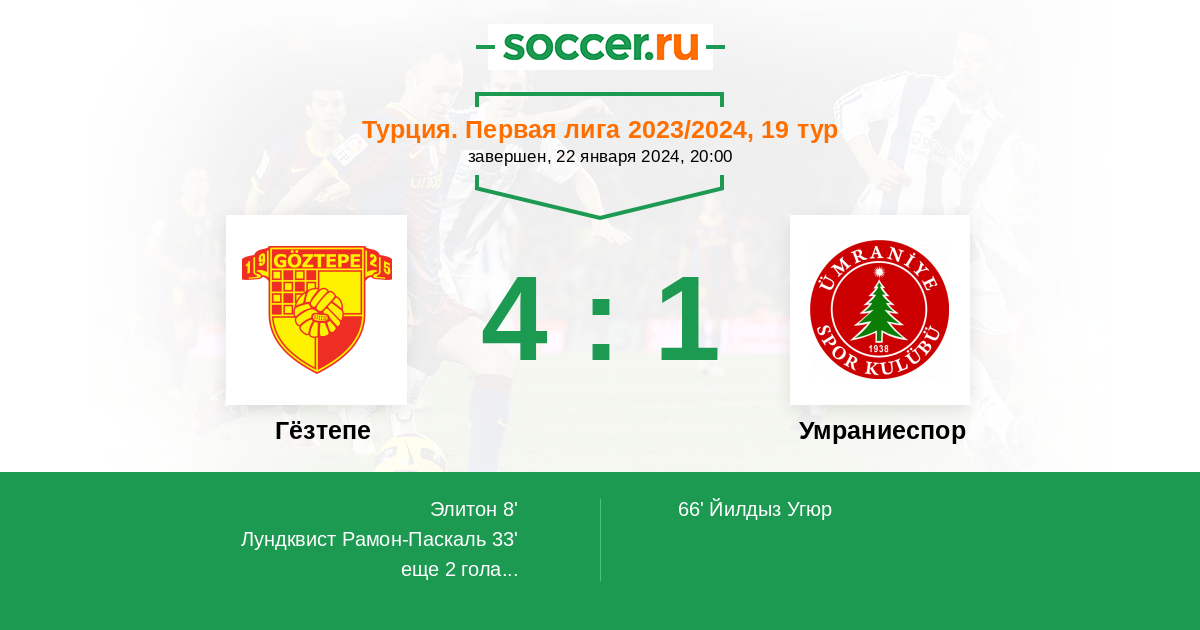 Протокол матча Гёзтепе против Умраниеспор