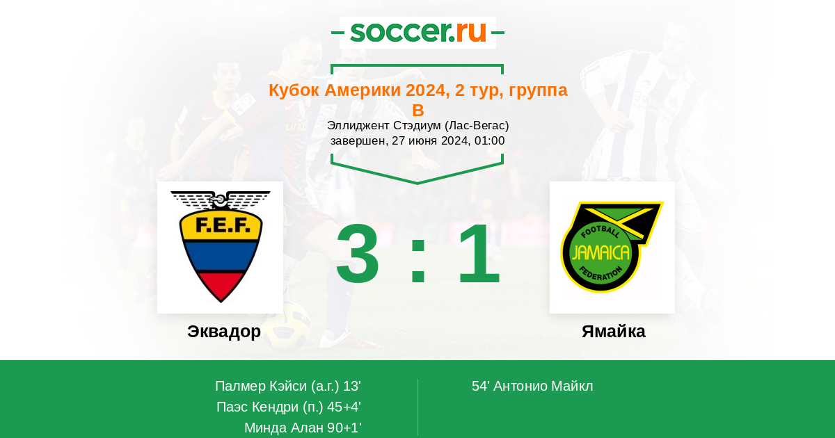 Протокол матча Эквадор против Ямайка