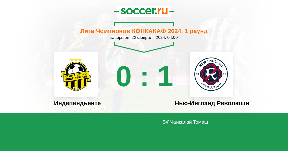 Протокол матча Индепендьенте против Нью-Инглэнд Революшн