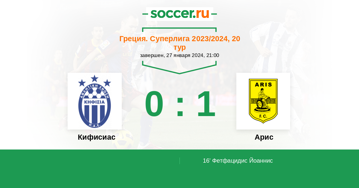 16' (0:1) Фетфацидис Йоаннис (19) (Менендес Джонатан (27))