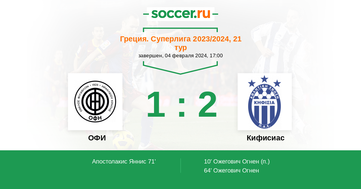 Протокол матча ОФИ против Кифисиас