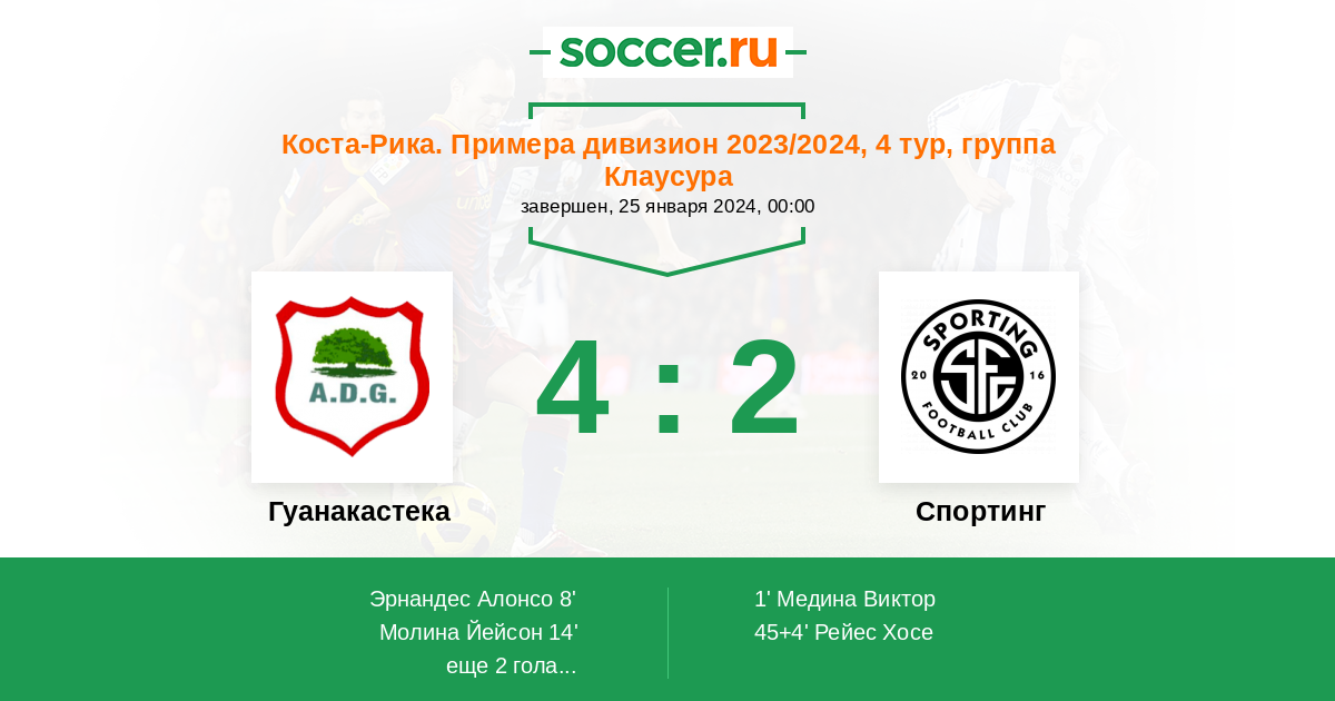 Протокол матча Гуанакастека против Спортинг Сан-Хосе