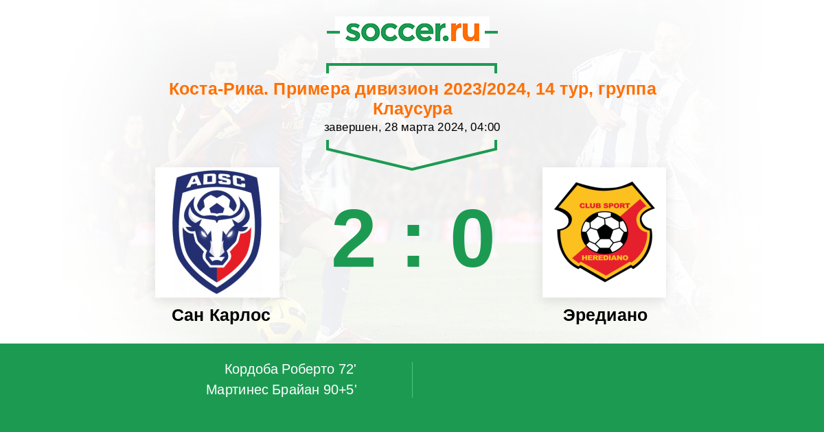 Протокол матча Сан Карлос против Эредиано