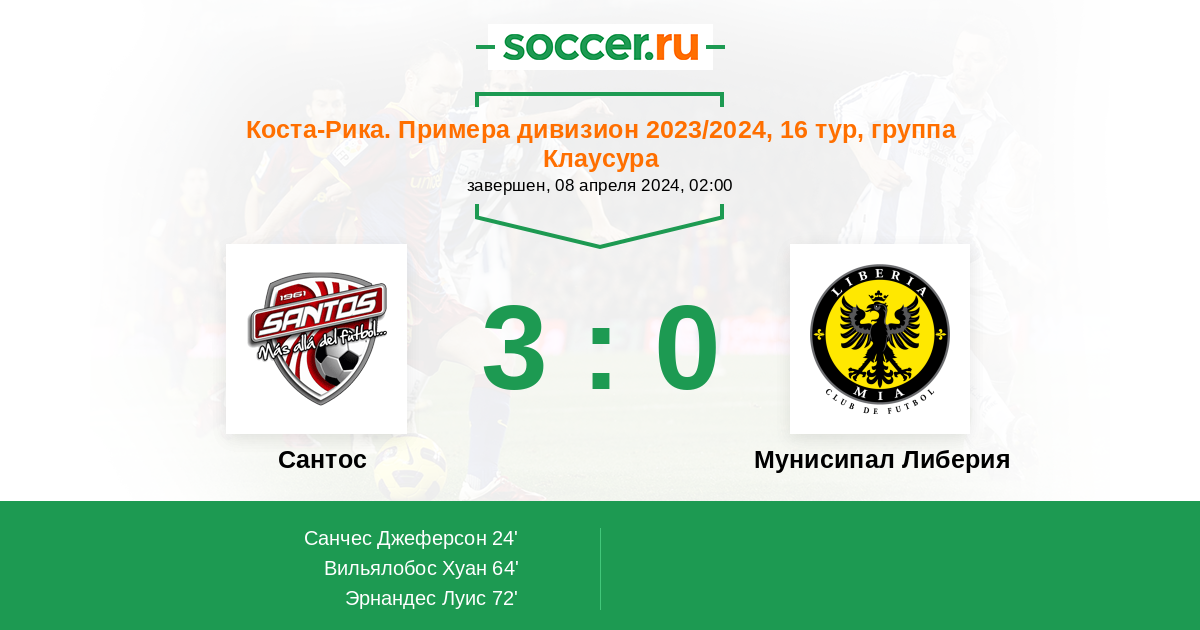 Протокол матча Сантос против Либерия