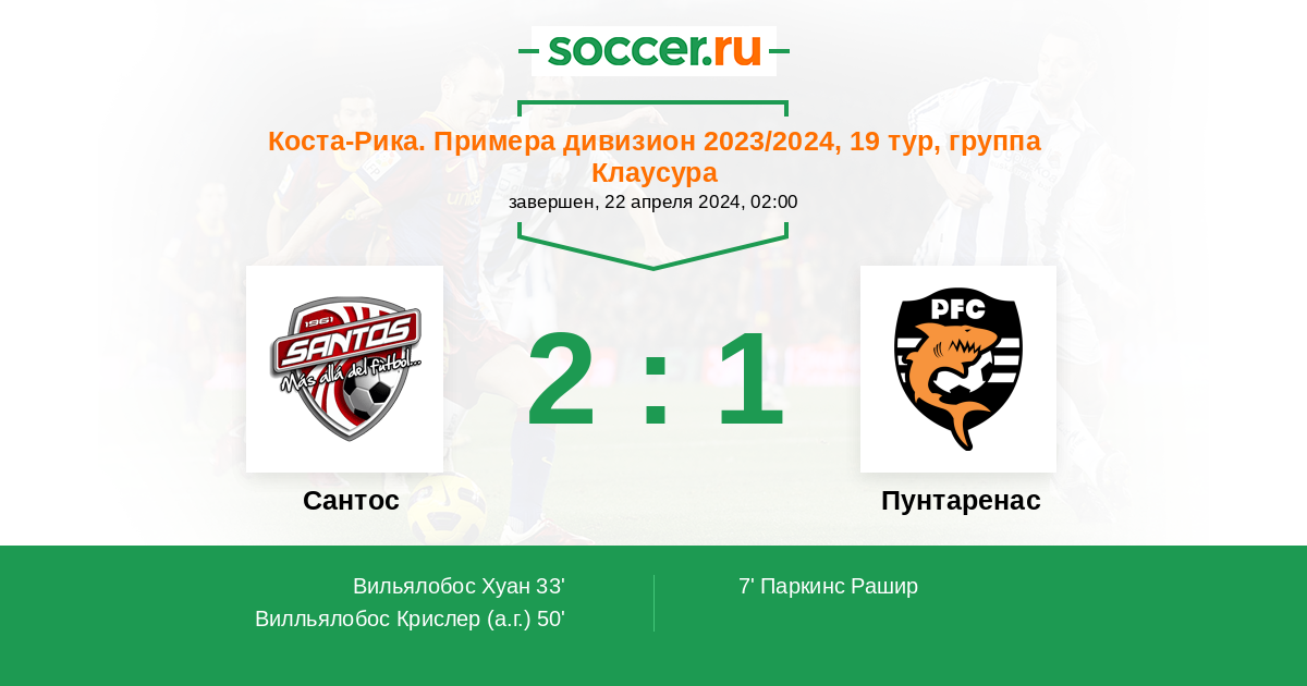 Протокол матча Сантос против Пунтаренас