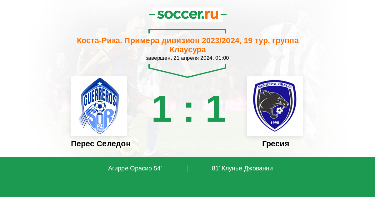 Протокол матча Зеледон против Гресия
