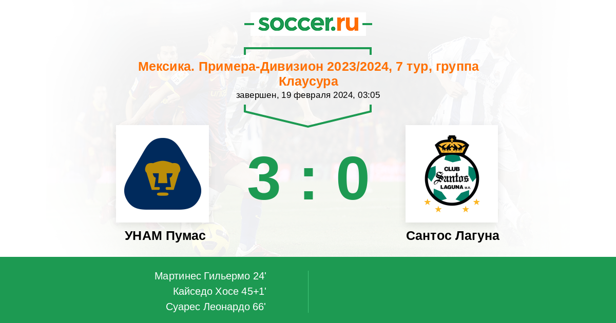 Протокол матча УНАМ Пумас против Сантос Лагуна