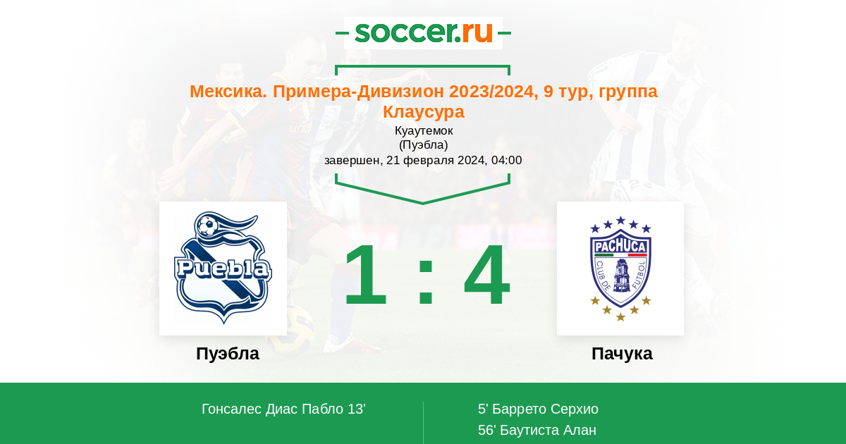 Протокол матча Пуэбла против Пачука