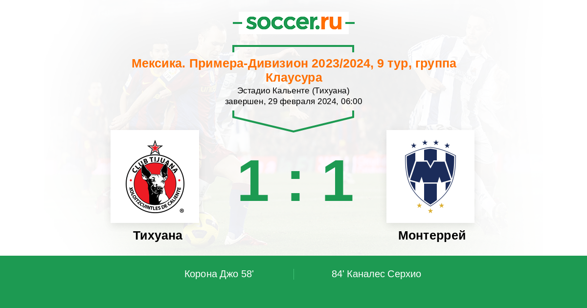 58' (1:0) Корона Джо (6) (Ривера Кристиан (14))