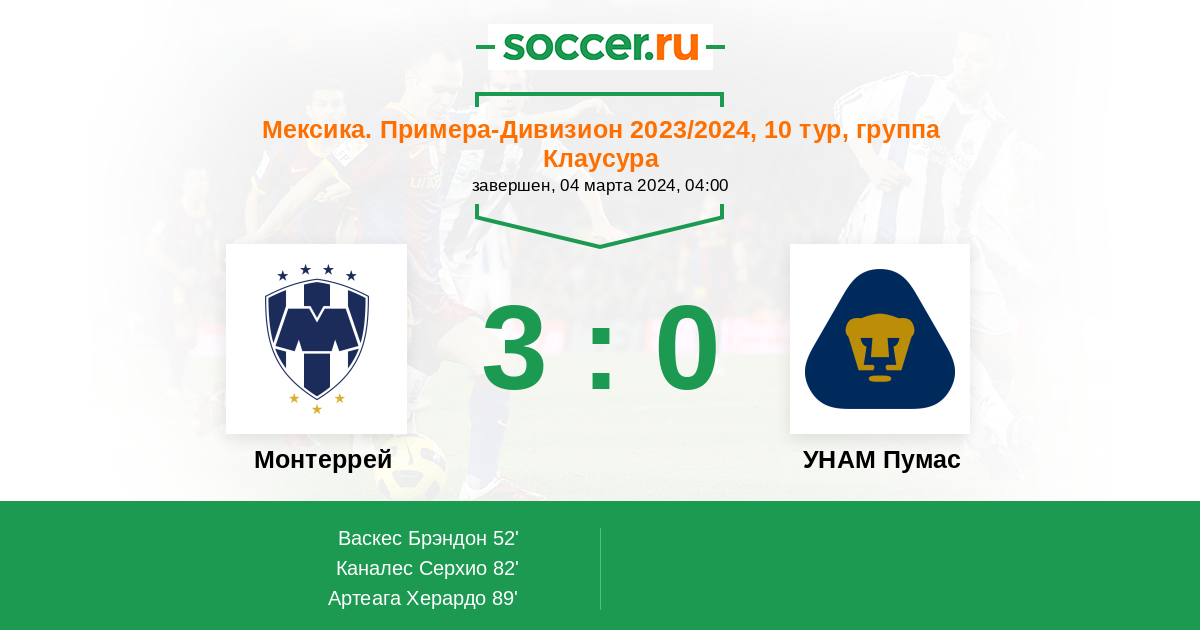Протокол матча Монтеррей против УНАМ Пумас