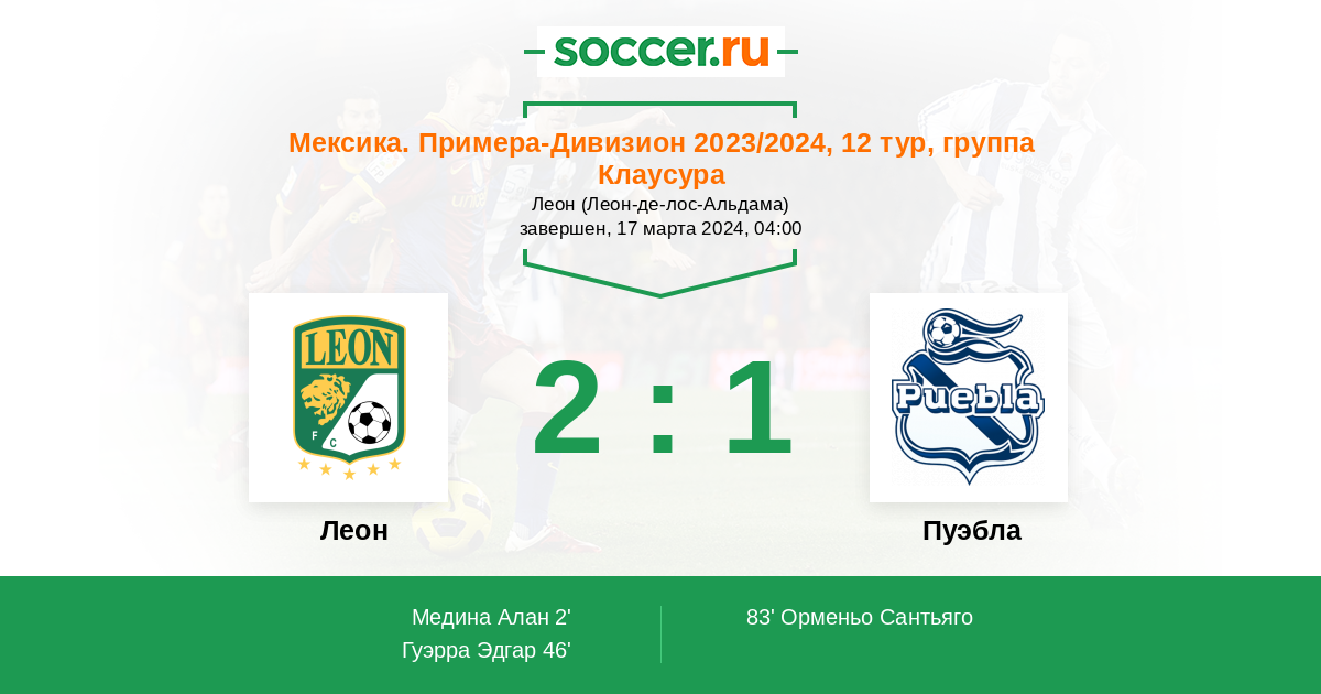 46' (2:0) Гуэрра Эдгар (15) (Эрнандес Элиас (11))