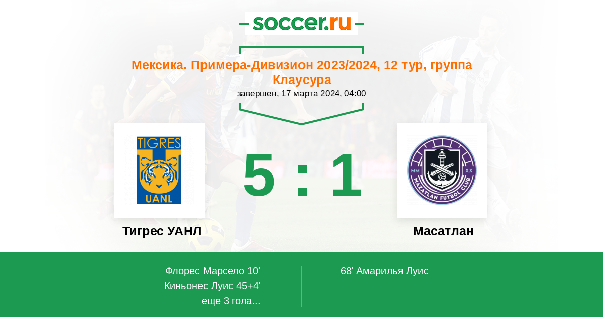 10' (1:0) Флорес Марсело (24) (Акино Хавьер (20))