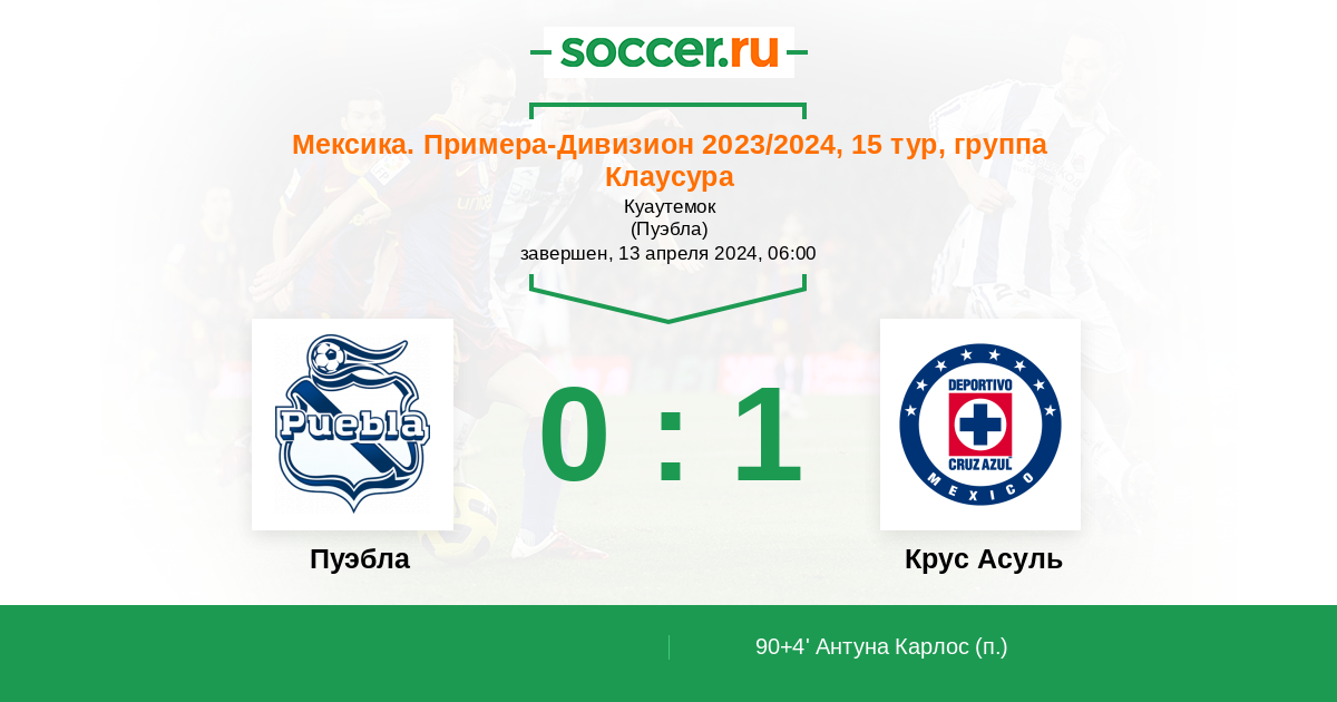 Протокол матча Пуэбла против Крус Асуль