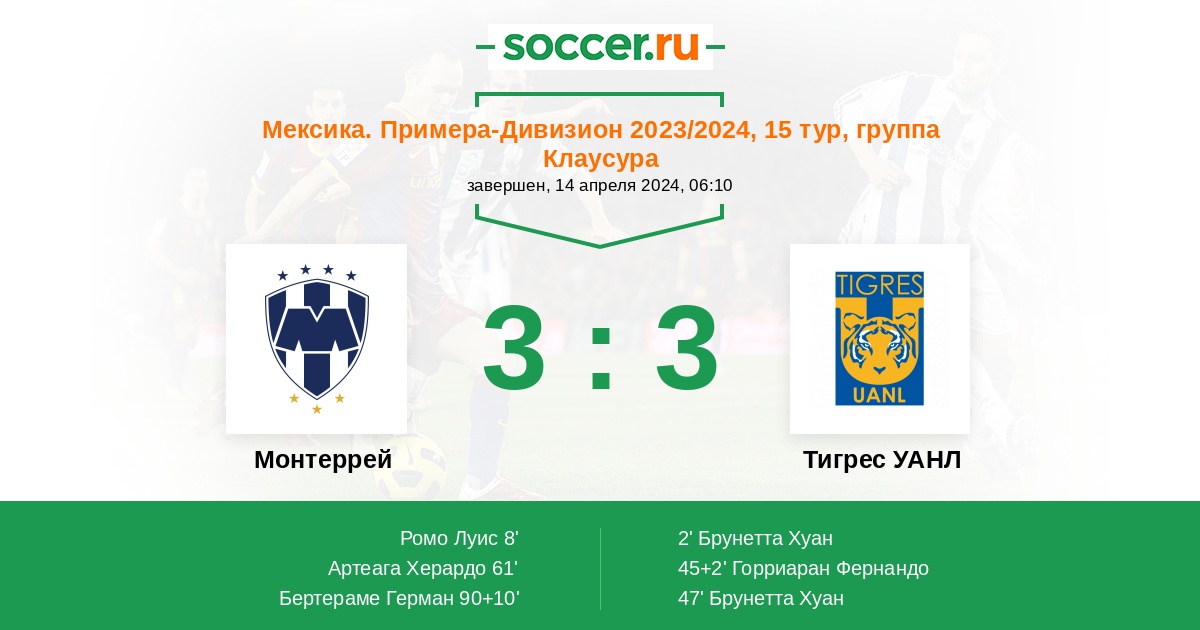 Протокол матча Монтеррей против Тигрес УАНЛ