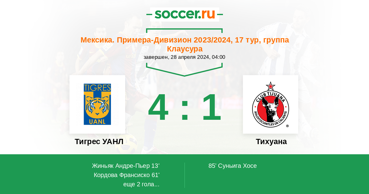 Протокол матча Тигрес УАНЛ против Тихуана