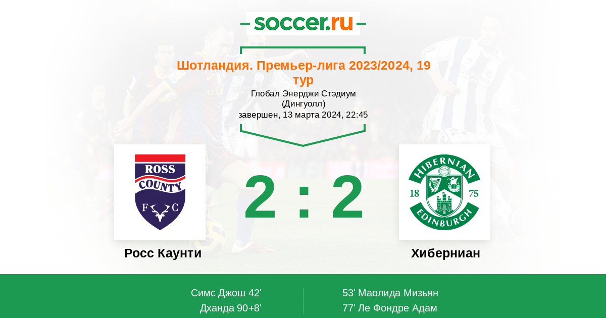 Протокол матча Росс Каунти против Хиберниан