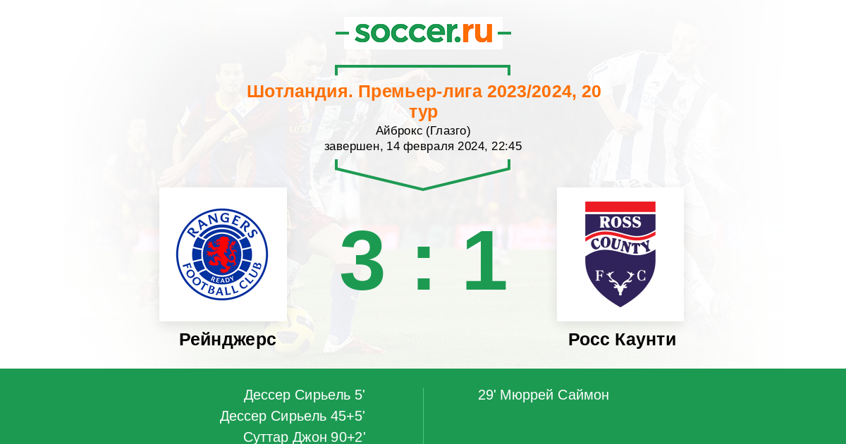 Протокол матча Рейнджерс против Росс Каунти