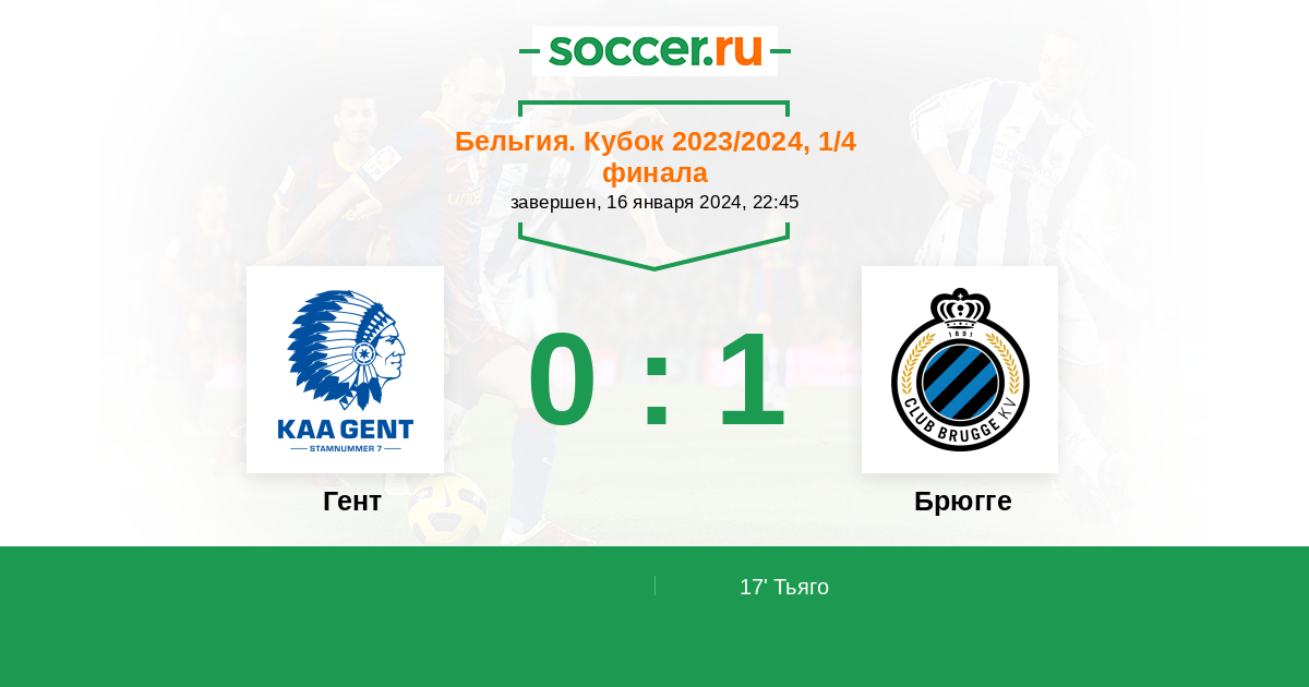 Протокол матча Гент против Брюгге