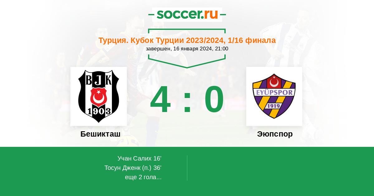 Протокол матча Бешикташ против Эюпспор