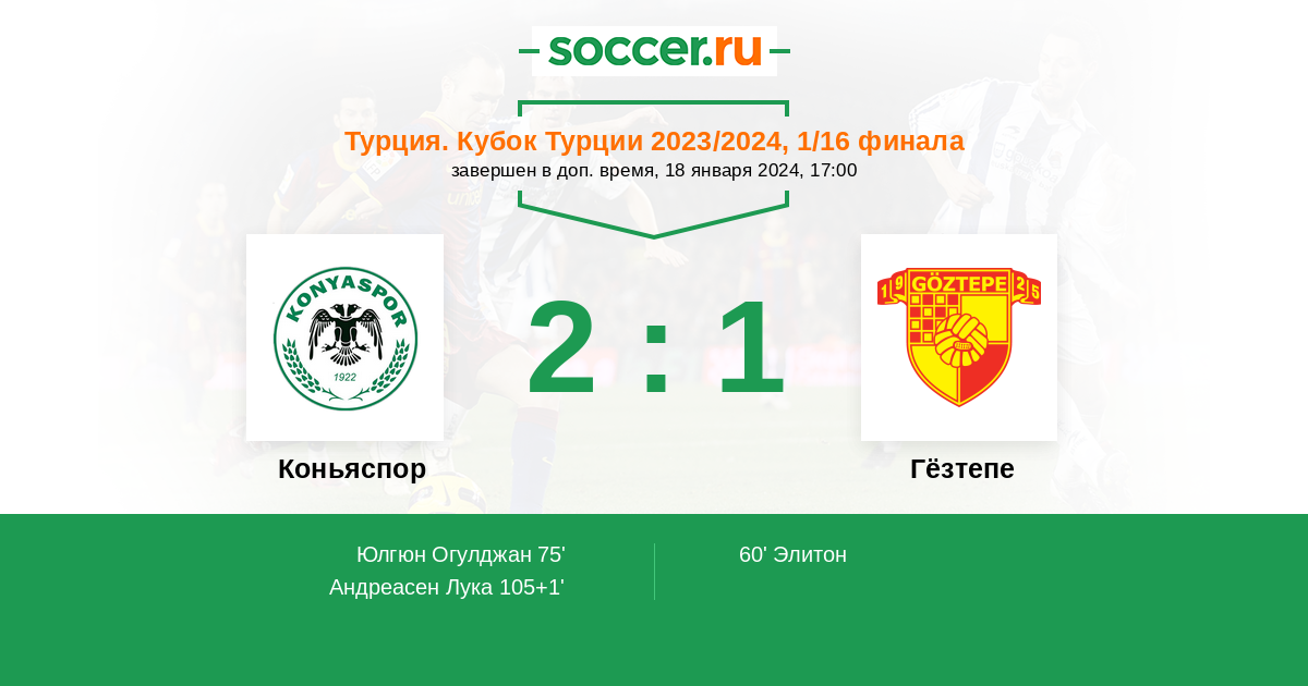 Протокол матча Коньяспор против Гёзтепе
