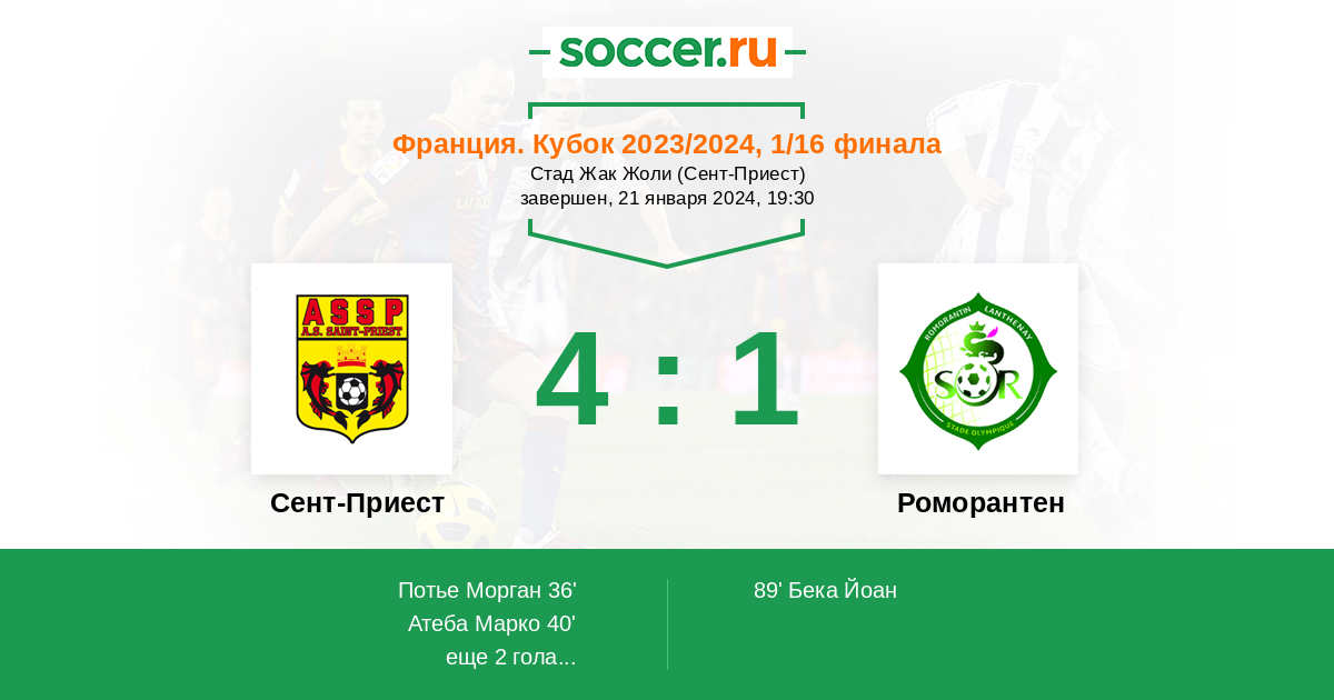 Протокол матча Сент-Приест против Роморантен