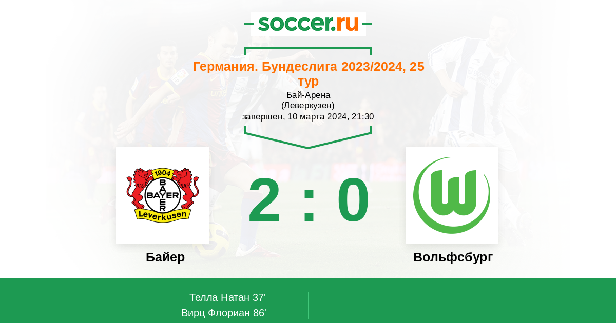 Протокол матча Байер против Вольфсбург