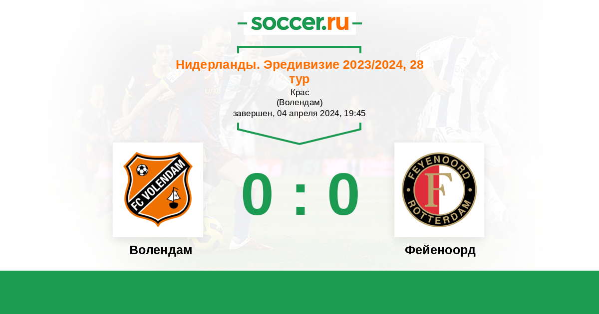 Протокол матча Волендам против Фейеноорд