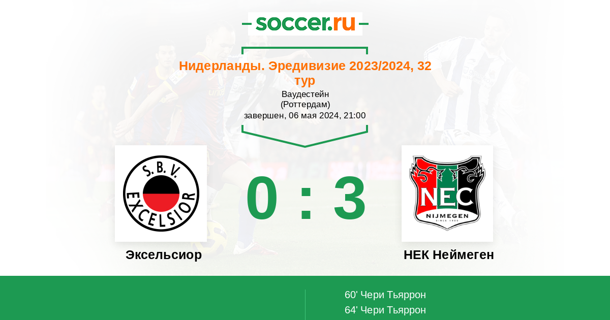 Протокол матча Эксельсиор против НЕК Неймеген