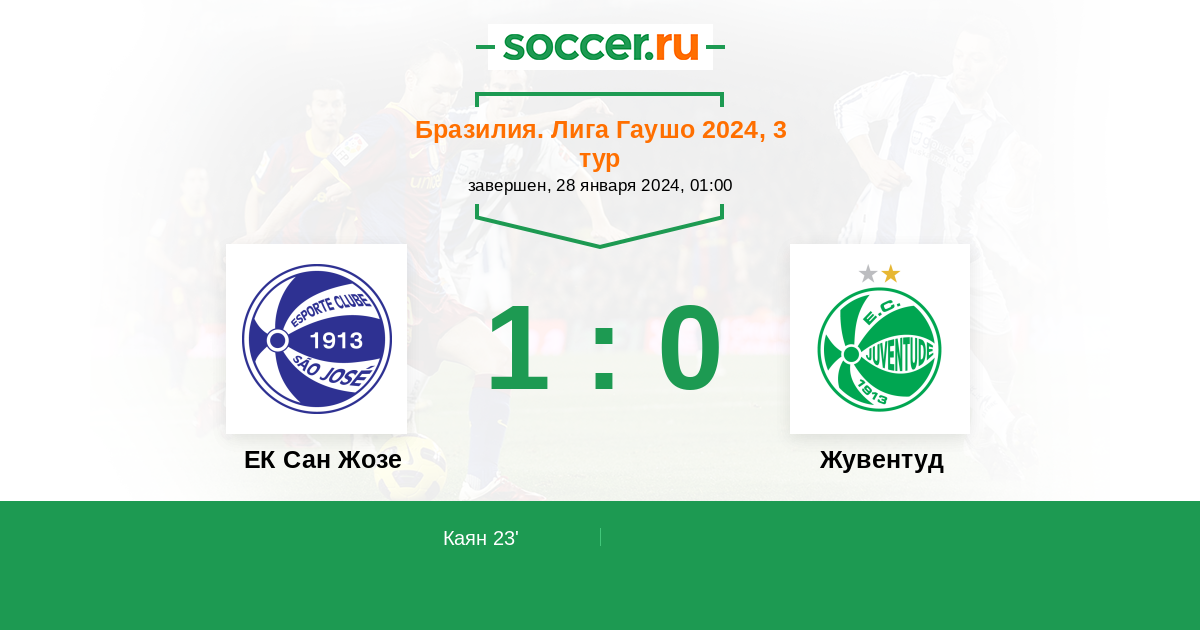 Протокол матча ЕК Сан Жозе против Жувентуд