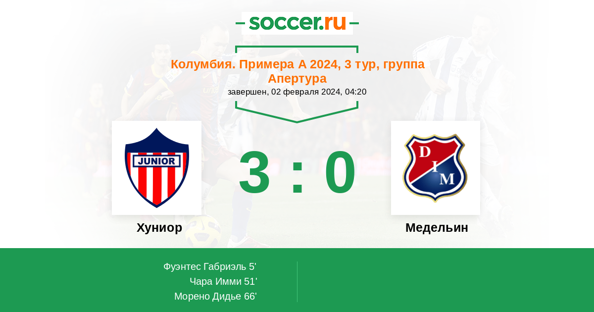 66' (3:0) Морено Дидье (6) (Кайседо Дейбер (20))
