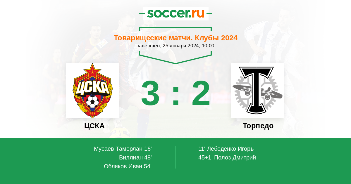 Протокол матча ЦСКА против Торпедо